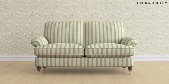 6.12.13 Buy Beaumaris by Laura Ashley 3 Seater Small Sofa Kinsham Stripe Hedgerow Green Low Brass Castor - Chestnut from the Next UK online shop Click here to use our accessible website