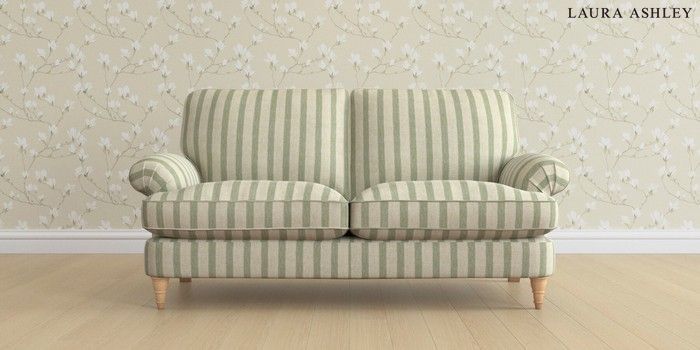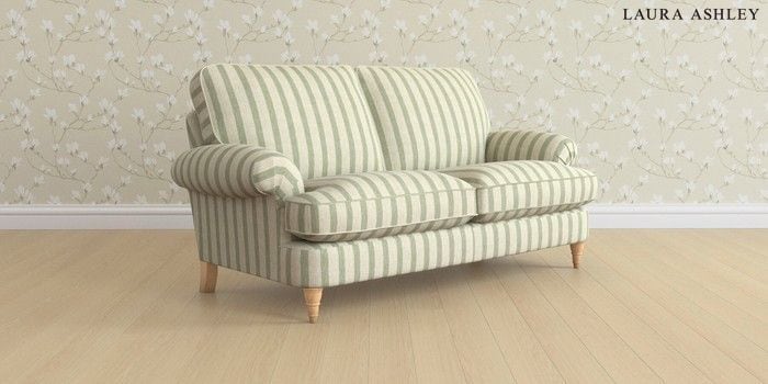 6.12.13 Buy Beaumaris by Laura Ashley 3 Seater Small Sofa Kinsham Stripe Hedgerow Green Low Turned - Light Oak from the Next UK online shop Click here to use our accessible website