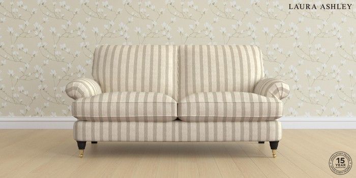 6.12.1 Buy Beaumaris by Laura Ashley 3 Seater Small Sofa Kinsham Stripe Natural Low Brass Castor - Black from the Next UK online shop Click here to use our accessible website