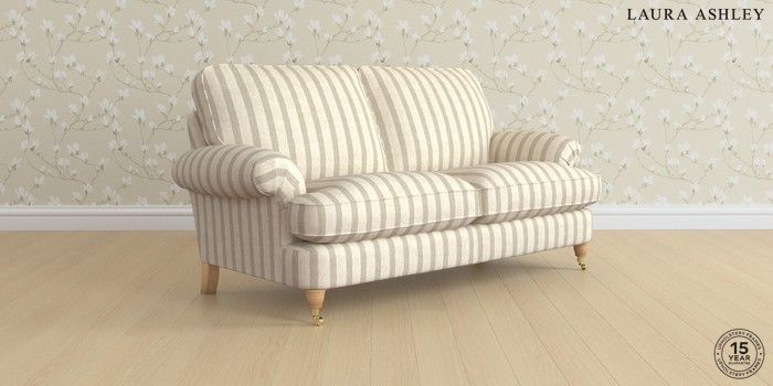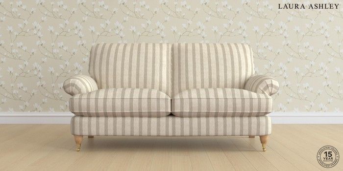 6.12.1 Buy Beaumaris by Laura Ashley 3 Seater Small Sofa Kinsham Stripe Natural Low Brass Castor - Light Oak from the Next UK online shop Click here to use our accessible website