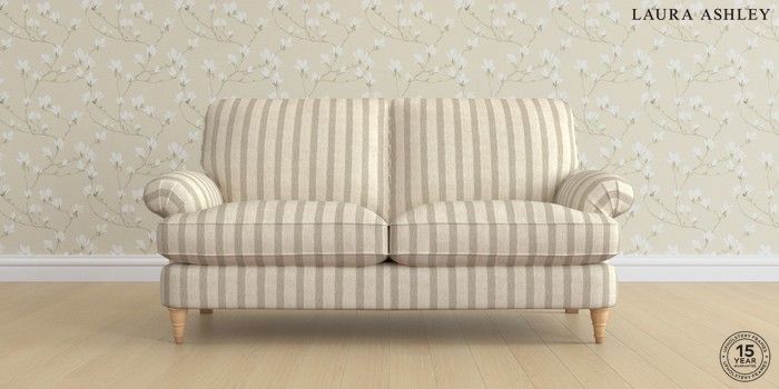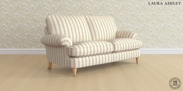 6.12.1 Buy Beaumaris by Laura Ashley 3 Seater Small Sofa Kinsham Stripe Natural Low Turned - Light Oak from the Next UK online shop Click here to use our accessible website