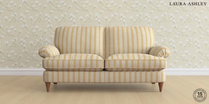 7.0.3 Buy Beaumaris by Laura Ashley 3 Seater Small Sofa Kinsham Stripe Ochre Yellow Low Turned - Teak from the Next UK online shop Click here to use our accessible website