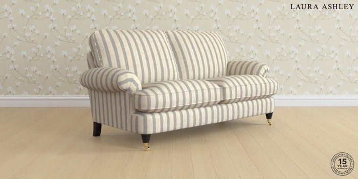 6.12.1 Buy Beaumaris by Laura Ashley 3 Seater Small Sofa Kinsham Stripe Seaspray Blue Low Brass Castor - Black from the Next UK online shop Click here to use our accessible website