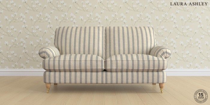 6.12.1 Buy Beaumaris by Laura Ashley 3 Seater Small Sofa Kinsham Stripe Seaspray Blue Low Brass Castor - Light Oak from the Next UK online shop Click here to use our accessible website