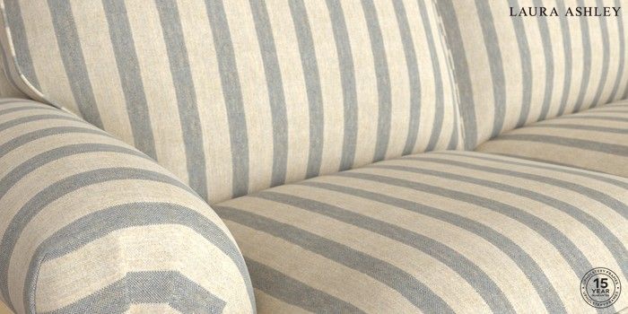 6.12.1 Buy Beaumaris by Laura Ashley 3 Seater Small Sofa Kinsham Stripe Seaspray Blue Low Chrome Castor - Chestnut from the Next UK online shop Click here to use our accessible website