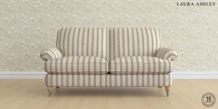 6.12.1 Buy Beaumaris by Laura Ashley 3 Seater Small Sofa Kinsham Stripe Seaspray Blue Low Chrome Castor - Light Oak from the Next UK online shop Click here to use our accessible website
