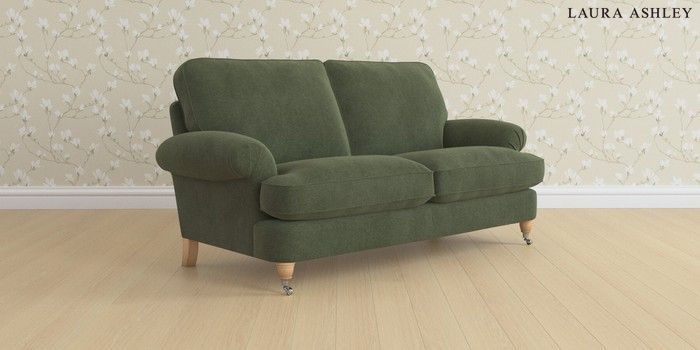 6.12.13 Buy Beaumaris by Laura Ashley 3 Seater Small Sofa Lundar Chenille Ivy Green Low Chrome Castor - Light Oak from the Next UK online shop Click here to use our accessible website