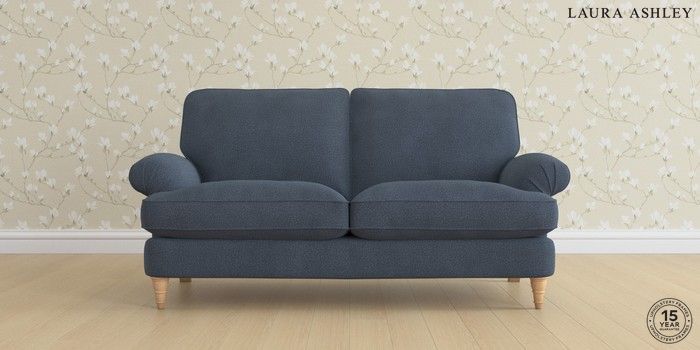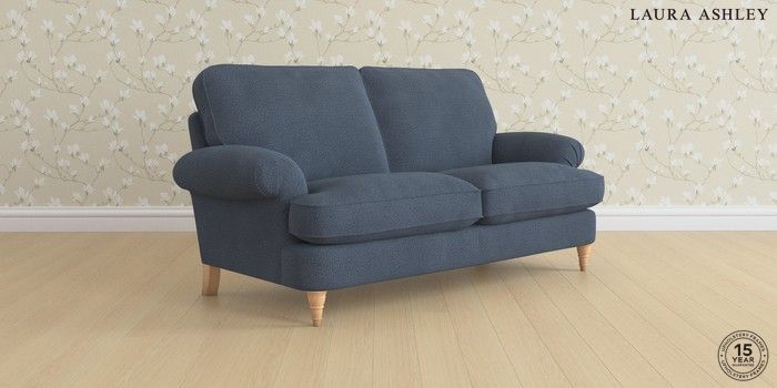 6.12.1 Buy Beaumaris by Laura Ashley 3 Seater Small Sofa Lundar Chenille Navy Blue Low Turned - Light Oak from the Next UK online shop Click here to use our accessible website