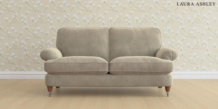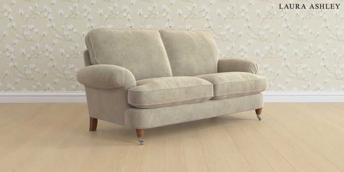 6.12.13 Buy Beaumaris by Laura Ashley 3 Seater Small Sofa Lundar Chenille Truffle Natural Low Chrome Castor - Teak from the Next UK online shop Click here to use our accessible website