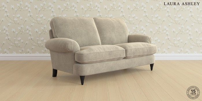 6.12.13 Buy Beaumaris by Laura Ashley 3 Seater Small Sofa Lundar Chenille Truffle Natural Low Turned - Black from the Next UK online shop Click here to use our accessible website