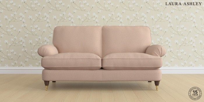 6.12.1 Buy Beaumaris by Laura Ashley 3 Seater Small Sofa Melbreak Geo Chalk Pink Low Brass Castor - Chestnut from the Next UK online shop Click here to use our accessible website
