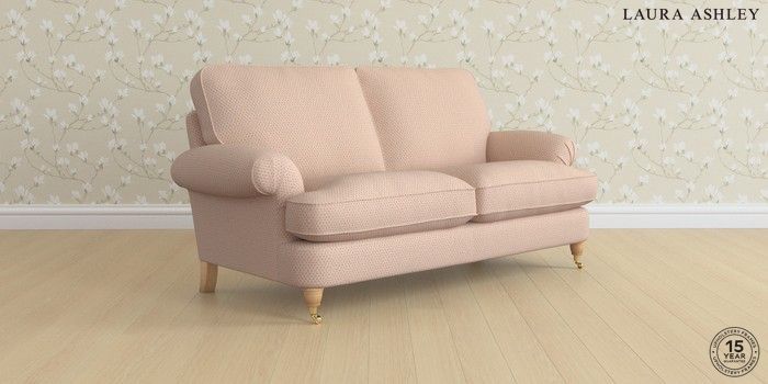 6.12.1 Buy Beaumaris by Laura Ashley 3 Seater Small Sofa Melbreak Geo Chalk Pink Low Brass Castor - Light Oak from the Next UK online shop Click here to use our accessible website