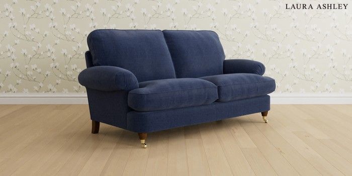 6.12.1 Buy Beaumaris by Laura Ashley 3 Seater Small Sofa Nantmor Midnight Navy Low Brass Castor - Teak from the Next UK online shop Click here to use our accessible website