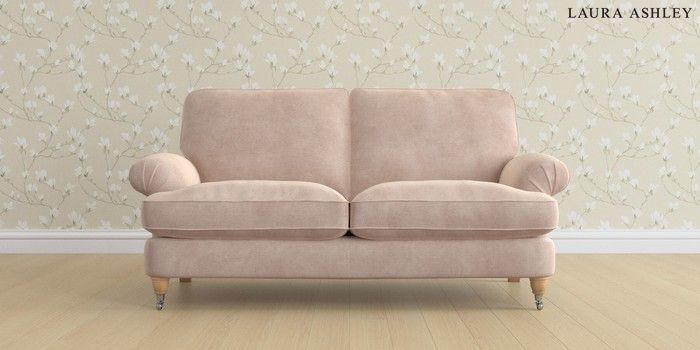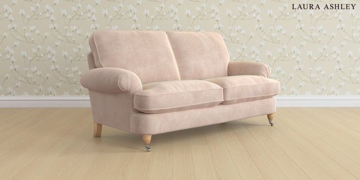 6.12.13 Buy Beaumaris by Laura Ashley 3 Seater Small Sofa Orla Chalk Pink Low Chrome Castor - Light Oak from the Next UK online shop Click here to use our accessible website