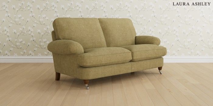 6.12.1 Buy Beaumaris by Laura Ashley 3 Seater Small Sofa Orla Gold Natural Low Chrome Castor - Teak from the Next UK online shop Click here to use our accessible website