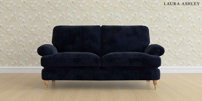 6.12.1 Buy Beaumaris by Laura Ashley 3 Seater Small Sofa Orla Midnight Navy Low Brass Castor - Light Oak from the Next UK online shop Click here to use our accessible website