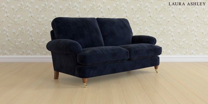 6.12.1 Buy Beaumaris by Laura Ashley 3 Seater Small Sofa Orla Midnight Navy Low Brass Castor - Teak from the Next UK online shop Click here to use our accessible website