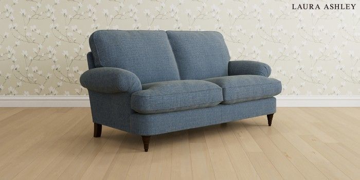 6.12.1 Buy Beaumaris by Laura Ashley 3 Seater Small Sofa Orla Seaspray Blue Low Turned - Chestnut from the Next UK online shop Click here to use our accessible website