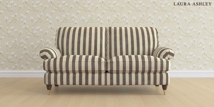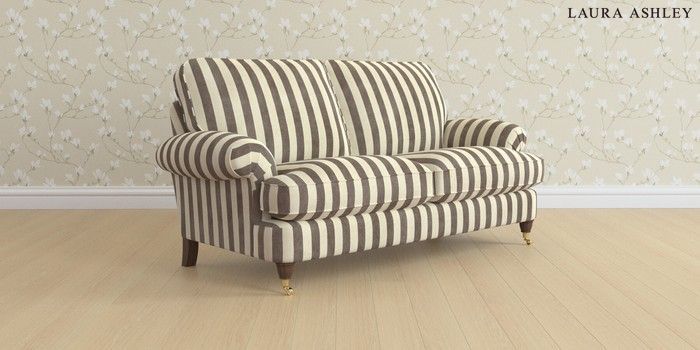 6.12.13 Buy Beaumaris by Laura Ashley 3 Seater Small Sofa Orla Stripe Dark Truffle Natural Low Brass Castor - Chestnut from the Next UK online shop Click here to use our accessible website