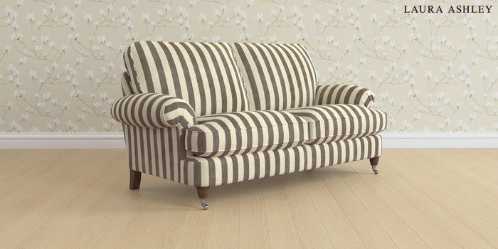 6.12.13 Buy Beaumaris by Laura Ashley 3 Seater Small Sofa Orla Stripe Dark Truffle Natural Low Chrome Castor - Chestnut from the Next UK online shop Click here to use our accessible website