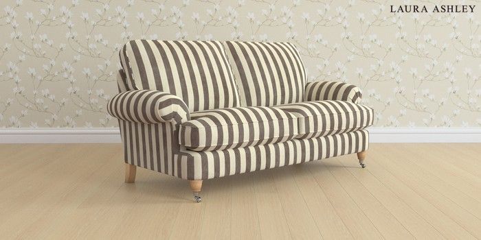 6.12.13 Buy Beaumaris by Laura Ashley 3 Seater Small Sofa Orla Stripe Dark Truffle Natural Low Chrome Castor - Light Oak from the Next UK online shop Click here to use our accessible website