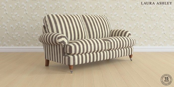 6.12.13 Buy Beaumaris by Laura Ashley 3 Seater Small Sofa Orla Stripe Dark Truffle Natural Low Chrome Castor - Teak from the Next UK online shop Click here to use our accessible website