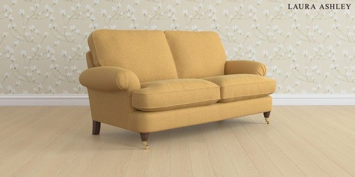6.12.1 Buy Beaumaris by Laura Ashley 3 Seater Small Sofa Peyton Ochre Yellow Low Brass Castor - Chestnut from the Next UK online shop Click here to use our accessible website