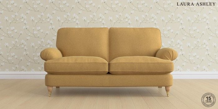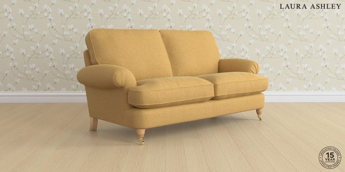 6.12.1 Buy Beaumaris by Laura Ashley 3 Seater Small Sofa Peyton Ochre Yellow Low Brass Castor - Light Oak from the Next UK online shop Click here to use our accessible website