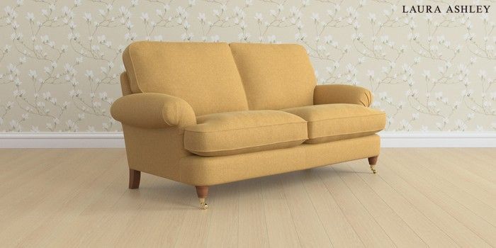 6.12.1 Buy Beaumaris by Laura Ashley 3 Seater Small Sofa Peyton Ochre Yellow Low Brass Castor - Teak from the Next UK online shop Click here to use our accessible website