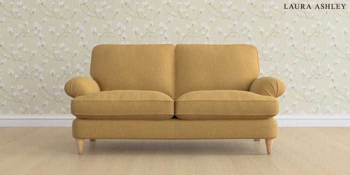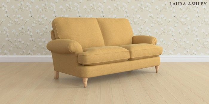 6.12.13 Buy Beaumaris by Laura Ashley 3 Seater Small Sofa Peyton Ochre Yellow Low Turned - Light Oak from the Next UK online shop Click here to use our accessible website