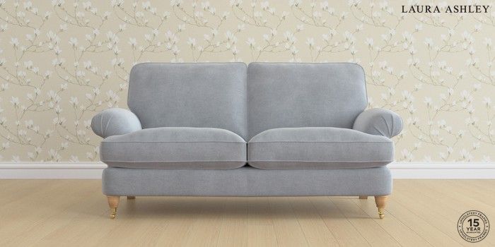 6.12.1 Buy Beaumaris by Laura Ashley 3 Seater Small Sofa Peyton Powder Blue Low Brass Castor - Light Oak from the Next UK online shop Click here to use our accessible website