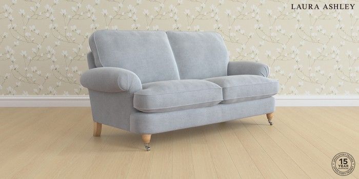 6.12.1 Buy Beaumaris by Laura Ashley 3 Seater Small Sofa Peyton Powder Blue Low Chrome Castor - Light Oak from the Next UK online shop Click here to use our accessible website