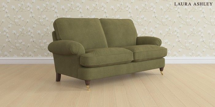 6.12.1 Buy Beaumaris by Laura Ashley 3 Seater Small Sofa Sinclair Cord Ivy Green Low Brass Castor - Chestnut from the Next UK online shop Click here to use our accessible website