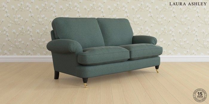 6.12.1 Buy Beaumaris by Laura Ashley 3 Seater Small Sofa Wooton Forest Green Low Brass Castor - Black from the Next UK online shop Click here to use our accessible website