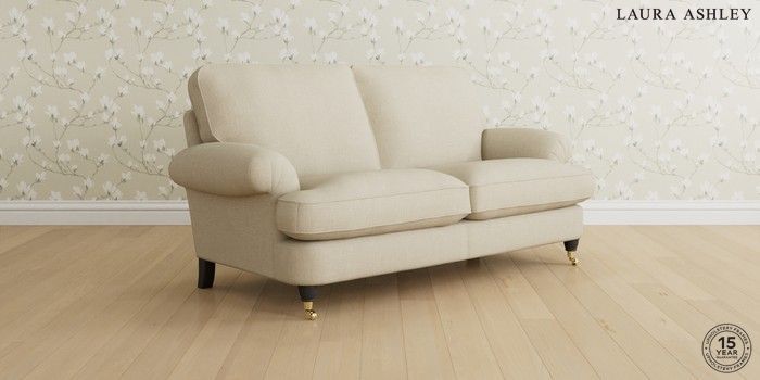 6.12.1 Buy Beaumaris by Laura Ashley 3 Seater Small Sofa Wooton Natural Low Brass Castor - Black from the Next UK online shop Click here to use our accessible website
