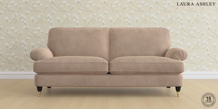 6.12.1 Buy Beaumaris by Laura Ashley 3 Seater Sofa Ailsworth Mink Natural Low Brass Castor - Black from the Next UK online shop Click here to use our accessible website