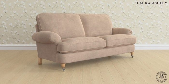 6.12.1 Buy Beaumaris by Laura Ashley 3 Seater Sofa Ailsworth Mink Natural Low Chrome Castor - Light Oak from the Next UK online shop Click here to use our accessible website