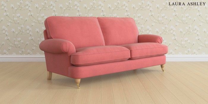 6.12.13 Buy Beaumaris by Laura Ashley 3 Seater Sofa Ailsworth Old Rose Pink Low Brass Castor - Light Oak from the Next UK online shop Click here to use our accessible website