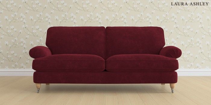6.12.1 Buy Beaumaris by Laura Ashley 3 Seater Sofa Alwyn Velvet Burgundy Red Low Chrome Castor - Light Oak from the Next UK online shop Click here to use our accessible website