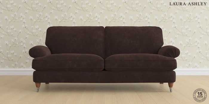 6.12.1 Buy Beaumaris by Laura Ashley 3 Seater Sofa Alwyn Velvet Chocolate Brown Low Chrome Castor - Teak from the Next UK online shop Click here to use our accessible website