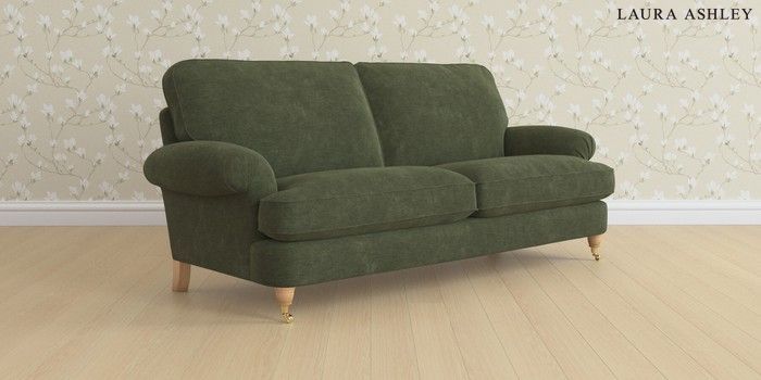 6.12.1 Buy Beaumaris by Laura Ashley 3 Seater Sofa Alwyn Velvet Ivy Green Low Brass Castor - Light Oak from the Next UK online shop Click here to use our accessible website