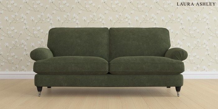 6.12.1 Buy Beaumaris by Laura Ashley 3 Seater Sofa Alwyn Velvet Ivy Green Low Chrome Castor - Black from the Next UK online shop Click here to use our accessible website
