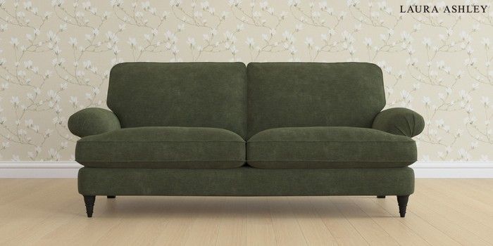 6.12.1 Buy Beaumaris by Laura Ashley 3 Seater Sofa Alwyn Velvet Ivy Green Low Turned - Black from the Next UK online shop Click here to use our accessible website