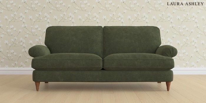 6.12.1 Buy Beaumaris by Laura Ashley 3 Seater Sofa Alwyn Velvet Ivy Green Low Turned - Teak from the Next UK online shop Click here to use our accessible website
