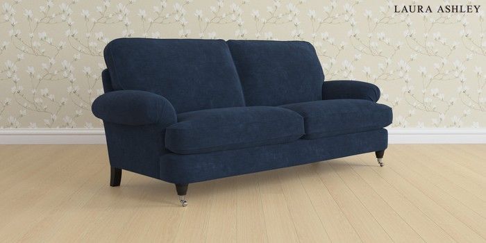 6.12.1 Buy Beaumaris by Laura Ashley 3 Seater Sofa Alwyn Velvet Midnight Navy Low Chrome Castor - Black from the Next UK online shop Click here to use our accessible website
