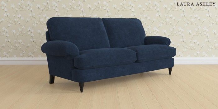 6.12.1 Buy Beaumaris by Laura Ashley 3 Seater Sofa Alwyn Velvet Midnight Navy Low Turned - Black from the Next UK online shop Click here to use our accessible website
