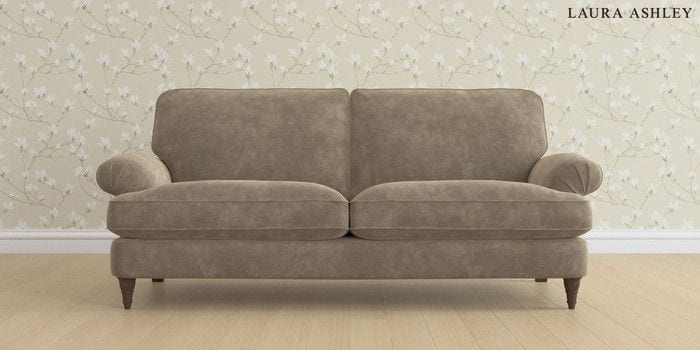 6.12.13 Buy Beaumaris by Laura Ashley 3 Seater Sofa Alwyn Velvet Truffle Natural Low Turned - Chestnut from the Next UK online shop Click here to use our accessible website