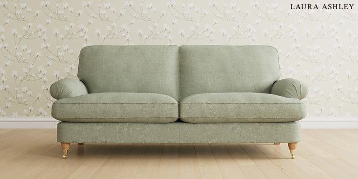 6.12.1 Buy Beaumaris by Laura Ashley 3 Seater Sofa Anneliese Sage Green Low Brass Castor - Light Oak from the Next UK online shop Click here to use our accessible website