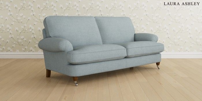 6.12.1 Buy Beaumaris by Laura Ashley 3 Seater Sofa Anneliese Seaspray Blue Low Chrome Castor - Teak from the Next UK online shop Click here to use our accessible website