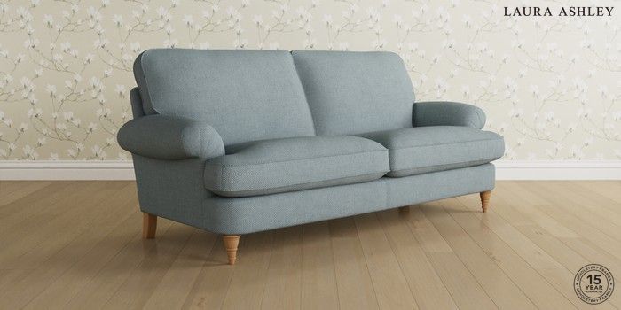 6.12.1 Buy Beaumaris by Laura Ashley 3 Seater Sofa Anneliese Seaspray Blue Low Turned - Light Oak from the Next UK online shop Click here to use our accessible website